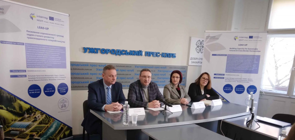 V piatok 21. marca o 11.00 hod. sa v priestoroch Užhorodského tlačového klubu uskutočnila tlačová konferencia, ktorej hlavnou témou bol začiatok projektu LEAD-UP: Budovanie kapacít pre udržateľnú budúcnosť a cezhraničné partnerstvá realizovaného v rámci programu INTERREG NEXT Maďarsko-Slovensko-Rumunsko-Ukrajina zamerané na zvýšenie inštitucionálnej kapacity miestnych komunít pre rozvoj a realizáciu cezhraničných projektov infraštruktúry.