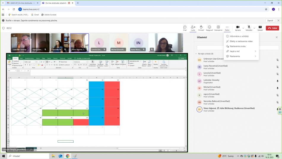 ON-LINE STRETNUTIE PROJEKTOVÉHO TÍMU A ÚČASTNÍKOV PROJEKTU