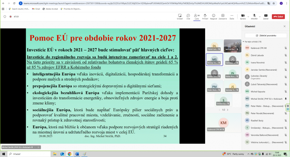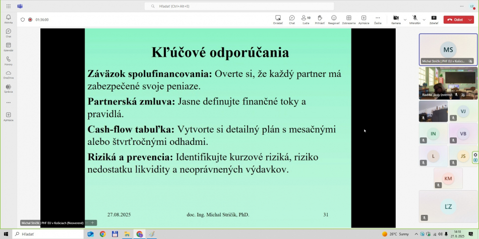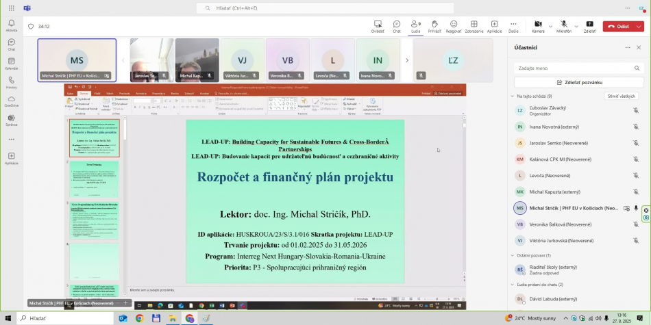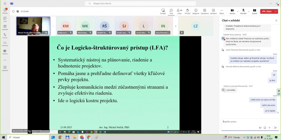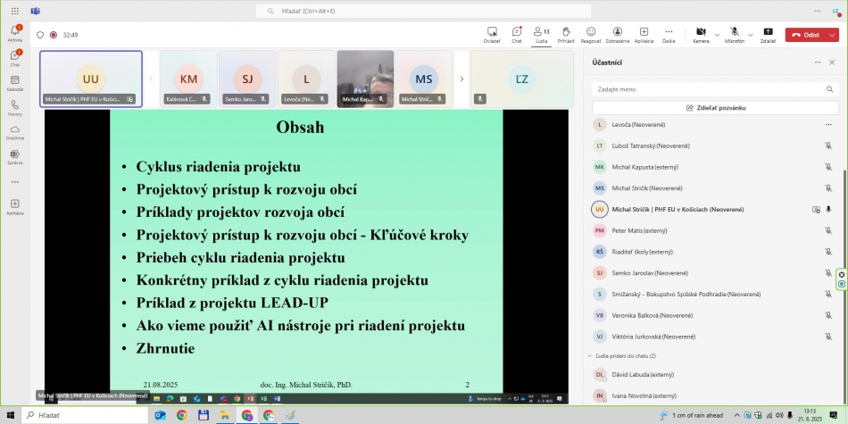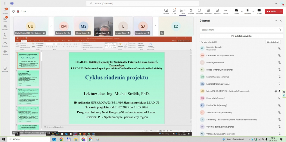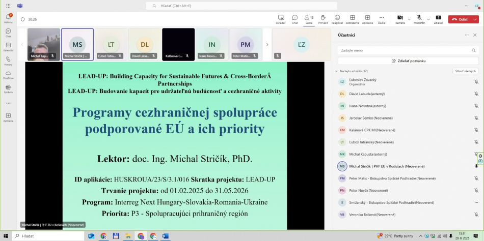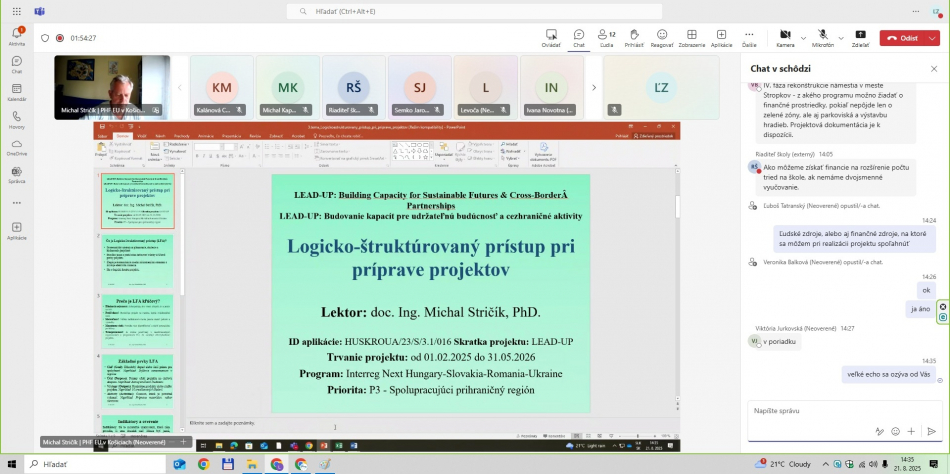 - LFA expert projektu – celé on-line školenie viedol prezentujúci doc. Ing. Michal Stričík, PhD., ktorý v projekte LEAD-UP zastáva pozíciu LFA experta projektu.