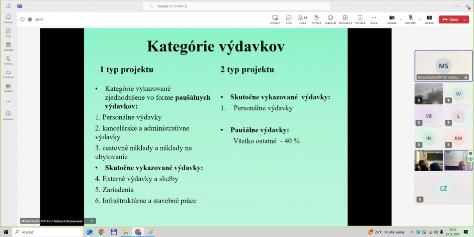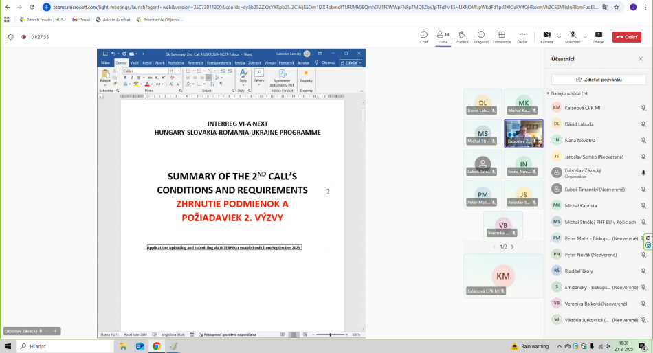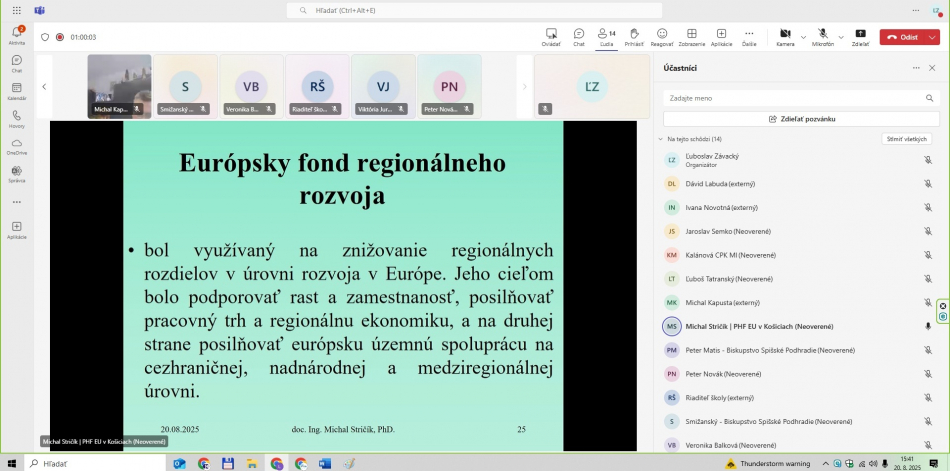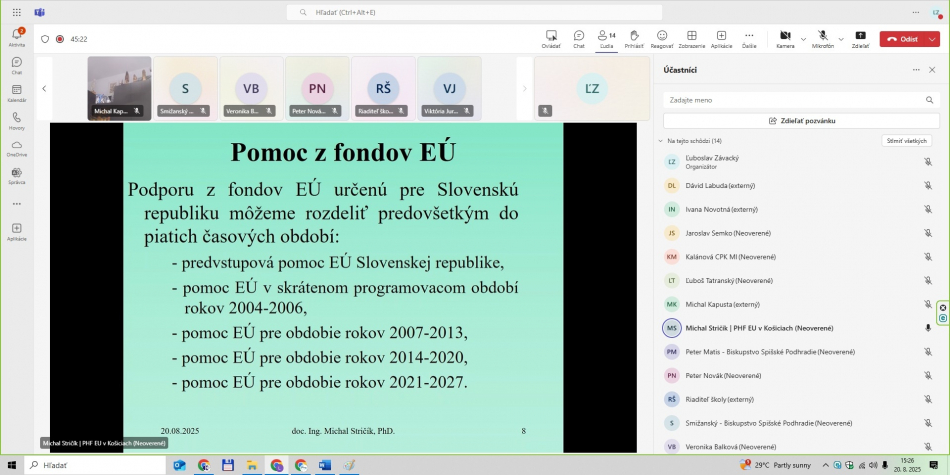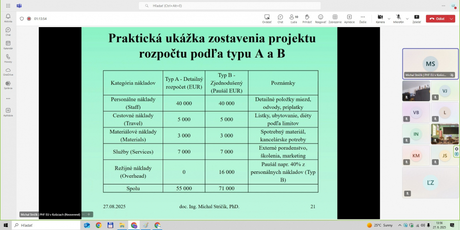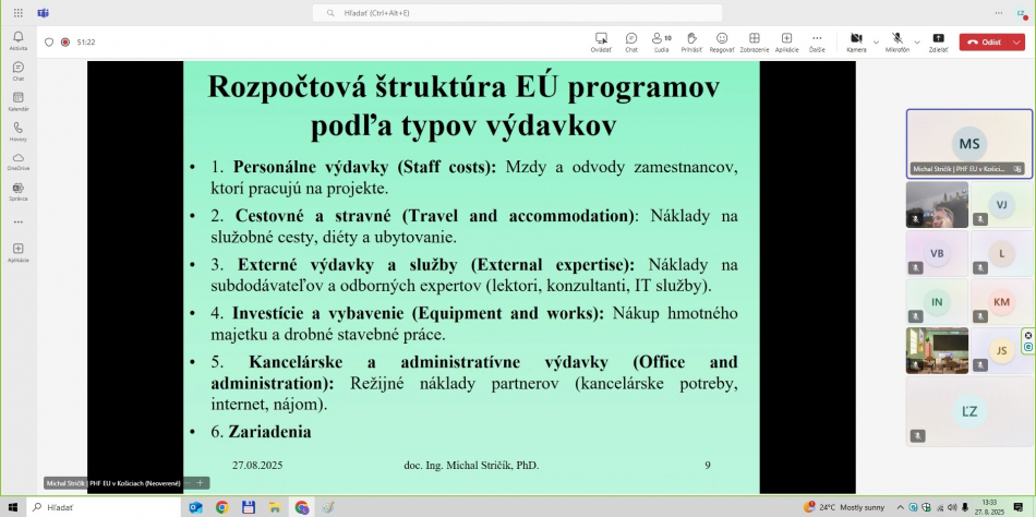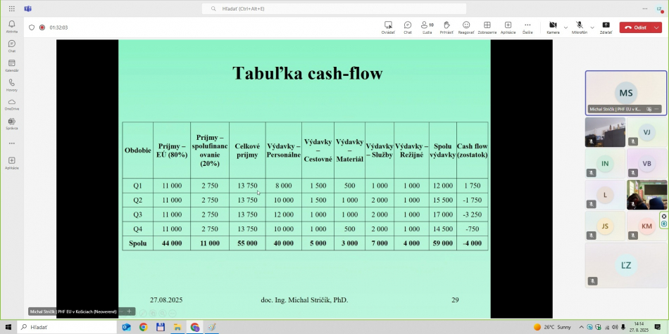 - LFA expert projektu – celé on-line školenie viedol prezentujúci doc. Ing. Michal Stričík, PhD., ktorý v projekte LEAD-UP zastáva pozíciu LFA experta projektu.