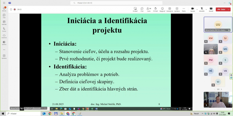 • 21.8.2025   Cyklus riadenia projektu (Project Cycle Management) a projektový prístup k rozvoju účastníkov projektu a Logicko-štruktúrovaný prístup pri príprave projektov