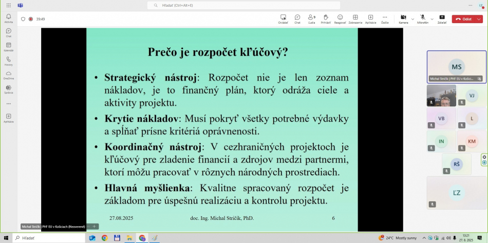 • 27.8.2025     Rozpočet a finančný plán projektu