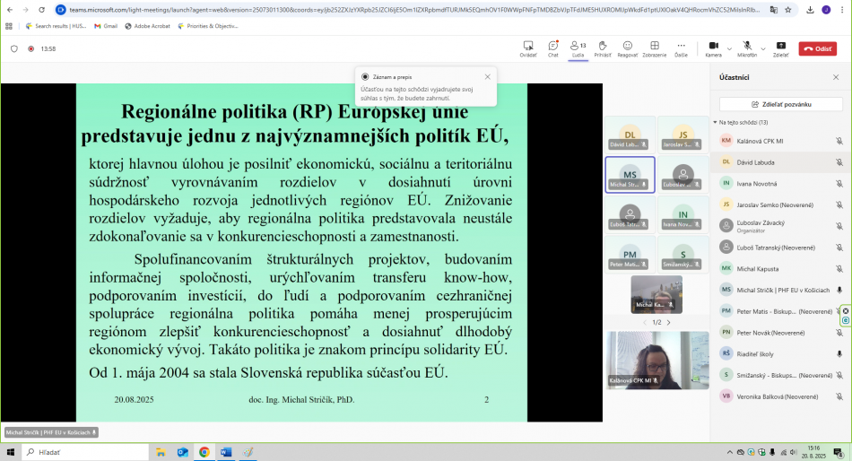 Účastníkom bola odprezentovaná finančná podpora zo štrukturálnych fondov Európskej únie, priblížila sa im predvstupová pomoc Európskej únie Slovenskej republike.