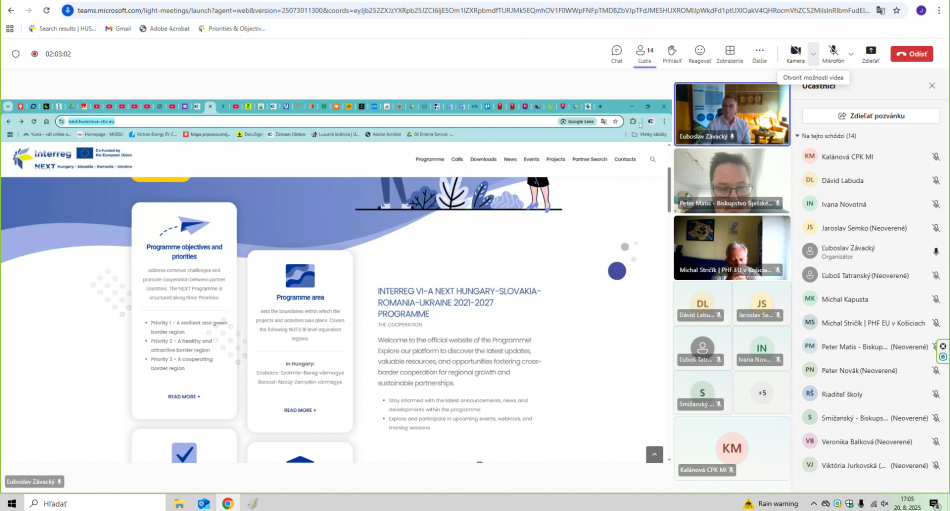 V dňoch 20., 21. a 27. augusta 2025 sa v priestoroch slovenského partnera projektu Centra prvého kontaktu - Michalovce uskutočnilo on-line školenie účastníkov projektu - 7 územných spoločenstiev, samospráv a Agentúr miestneho rozvoja alebo podobných organizácií, ktoré založil orgán miestnej samosprávy (podiel samosprávy na rozhodovaní je viac ako 50 %) z Košického a Prešovského samosprávneho kraja – ďalej účastník projektu LEAD-UP: Budovanie kapacít pre udržateľnú budúcnosť a cezhraničné partnerstvá (LEAD-UP: Building Capacity for Sustainable Futures & Cross-Border Partnerships), realizovaného v rámci programu INTERREG NEXT Maďarsko-Slovensko-Rumunsko-Ukrajina zameraný na zvýšenie inštitucionálnej kapacity miestnych komunít pre rozvoj a realizáciu cezhraničných projektov infraštruktúry.